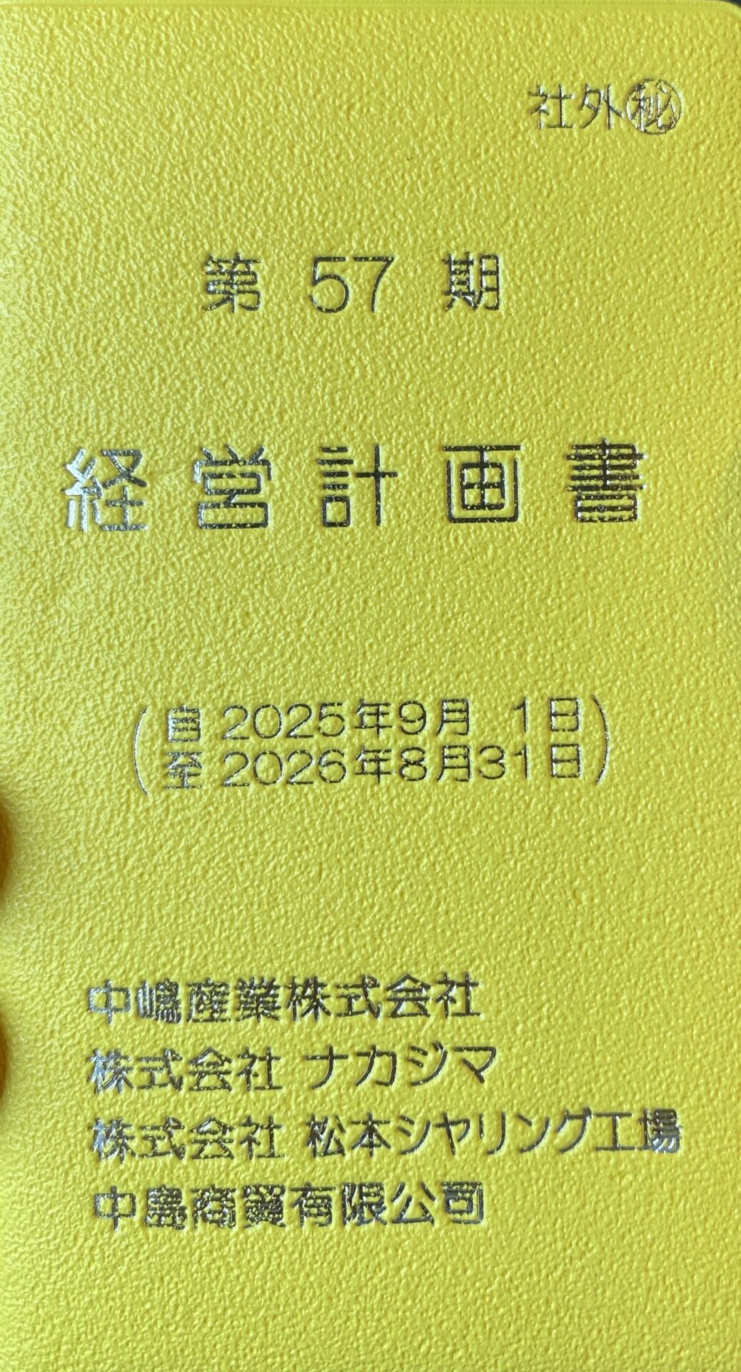 経営計画書の表紙は明るい黄色です。
